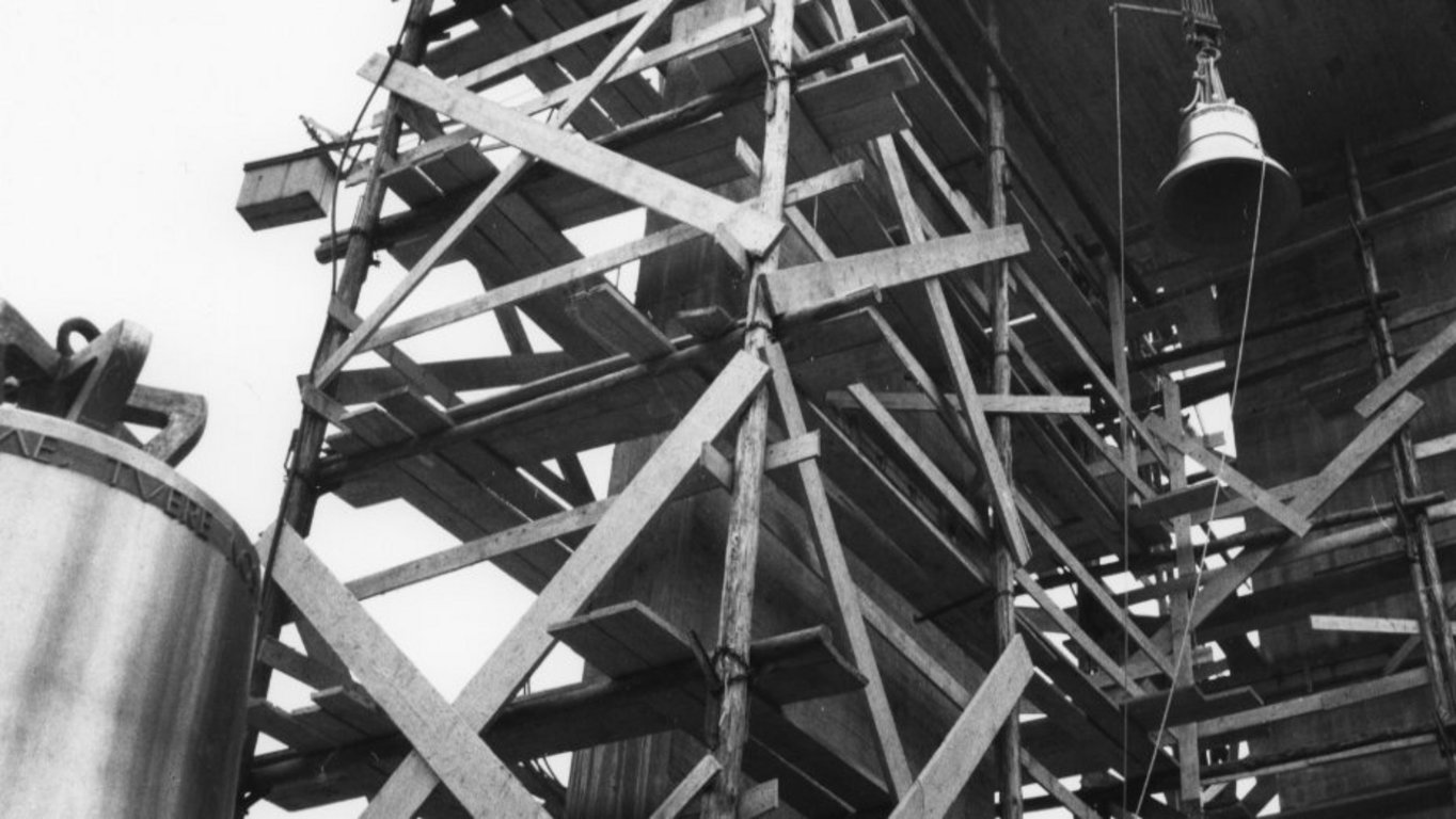 Die Bauarbeiten standen dann freilich nicht nur unter einem glücklichen Stern. Die Topografie erwies sich tatsächlich als schwierig. Als man im April 1963 mit den Aushubarbeiten begann, drohte der Hang abzurutschen. Er musste massiver und damit auch teurer befestigt werden. Der Bauplan geriet in Rückstand. Immerhin war im Oktober 1964 der Glockenturm fertig betoniert. Weil zu diesem Zeitpunkt aber die Westmauer erst in Angriff genommen und darin der Grundstein eingemauert wurde, ergab sich die seltsame Situation, dass bei der neuen Ennetbadener Kirche Grundsteinlegung und Glockenweihe gleichzeitig stattfanden: am 25. Oktober 1964. Einem alten Brauch folgend wurden die Glocken eine Woche später von der Ennetbadener Schuljugend in den Glockenturm gezogen.